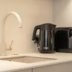 - ❓Is there a kitchen available at the apartment for guest use?Yes, the apartment is furnished with a mini-kitchen and offers a fridge and a dishwasher as well.